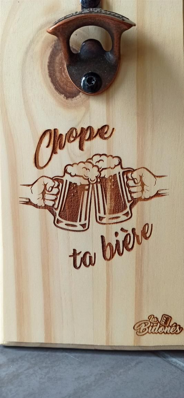 Nos décapsuleurs muraux sont en pin avec une finition sur chaque bord.