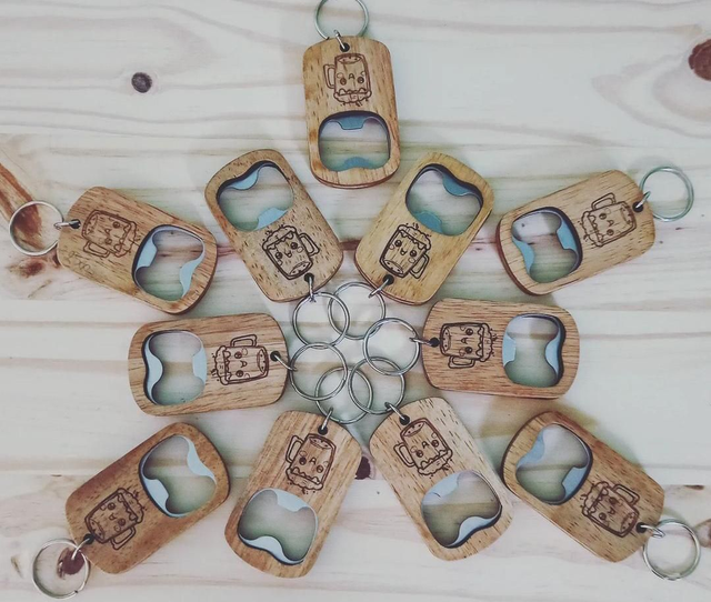 Porte-clés décapsuleur en bois personnalisable avec votre logo, phrase, design.